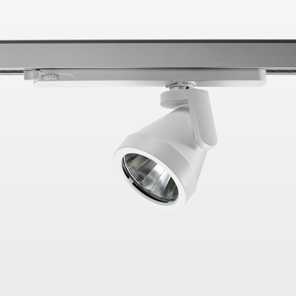 Surface-mounted luminaire mit LED, rated life of the LED L80/B10 50000 h (tambient 25°C), colour rendering index CRI > 90, chromaticity tolerance 2 SDCM (initial), rotation-symmetrical reflector with circular light distribution pattern,reflector pure aluminium 99,99% in MIRO-Silver®, luminaire head/retention arm die-cast aluminium, powder-coated, white, rotation angle 330°, swivel angle +/- 85°, In-Track-Adapter, On/Off, 220-240 V~ / 50-60 Hz, max. 27 luminaires per circuit (B16A fuse)