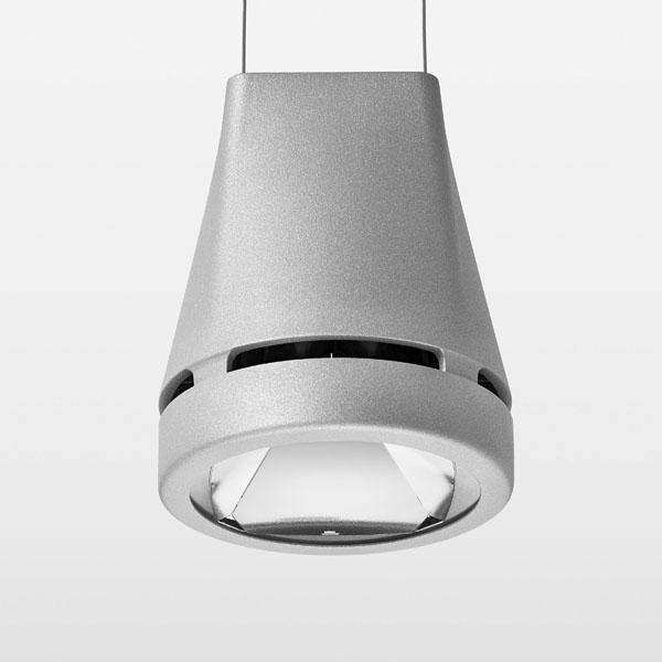 Suspended luminaire with LED, rated life of the LED L80/B10 > 50000 h, colour rendering index CRI > 70, chromaticity tolerance 2 SDCM (initial), reflector with circular light distribution pattern, reflector pure aluminium 99,99% in MIRO-Silver®, luminaire head die-cast aluminium, powder-coated, silver, separate driver unit