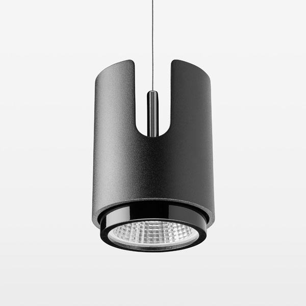 Suspended luminaire with LED, rated life of the LED L80/B10 50000 h (tambient 25°C), colour rendering index CRI > 95, chromaticity tolerance 2 SDCM (initial), reflector with oval light distribution pattern, 3D silicone lens to reduce the proportion of scattered light, reflector pure aluminium 99,99% in MIRO-Silver®, segmented, exchangeable reflector unit in high-sheen black plastic, with glass cover, luminaire housing die-cast aluminium, powder-coated, black